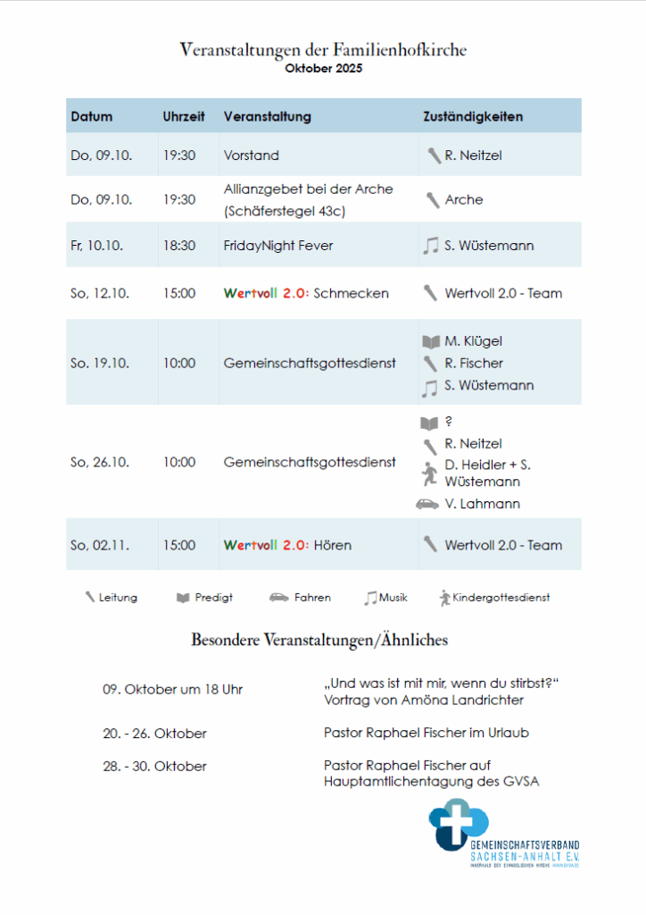 Der 3nachHalb-Gottesdienst ist ein von der Marienkirche Salzwedel initiierter Gottesdienst, an dem wir als Gemeinde teilnehmen und mitmachen. Von der Mariengemeinde wird er als „der etwas andere Gottesdienst“ beschrieben. Dieses Jahr geht es unter dem Motto „Lauter glauben“ um das, woran wir als Christen eigentlich glauben.